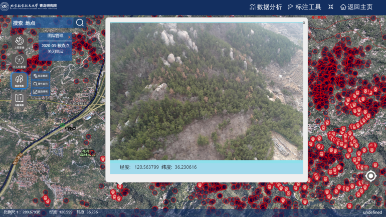 青岛市崂山区也属于松材线虫灾害区,我院空天技术应用研究院针对崂山区域山脉高差大(最大落差达300米)、风力大、秋季植被变色且多品种混杂等复杂情况,依托航空航天、AI、地理信息技术等学科优势,基于多维目标识别、多源数据融合、图像特征识别等多项技术基础,自主研发设计基于高分辨率遥感卫星、工业级林业专用无人机、人工智能大数据处理等多种前沿技术的综合解决方案,为崂山区提供航空普查、智能分析、防治效果评估、决策辅助等大数据一站式服务,一周内可完成崂山林区200平方公里所有数据获取、处理、分析及云端部署,相对于传统方案,效率提升5倍以上,自主打造专用识别算法引擎,识别准确率可达95%以上,更快发现问题树木,支撑用户更快采取措施,及时有效控制疫情。